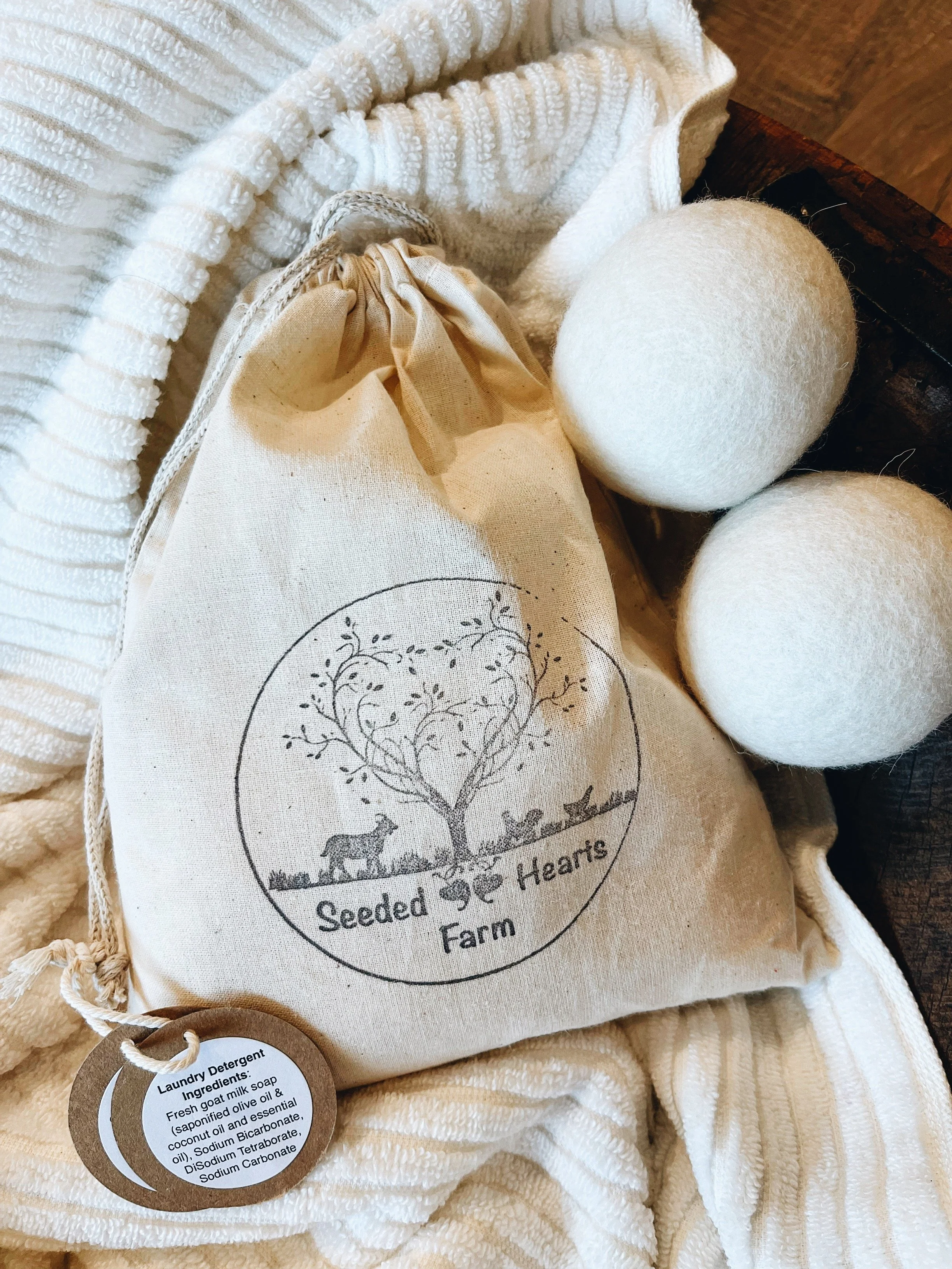 Powdered laundry soap made with fresh goat milk soap (saponified olive oil & coconut oil and Essential Oil), Sodium Bicarbonate, DiSodium Tetraborate, Sodium Carbonate. Directions for use: Use 1-2 Tablespoons per load. Best used in warm or hot water. To use cold water, dilute in 1/2 cup hot water then add to wash. 34 oz approximately 50 loads.
